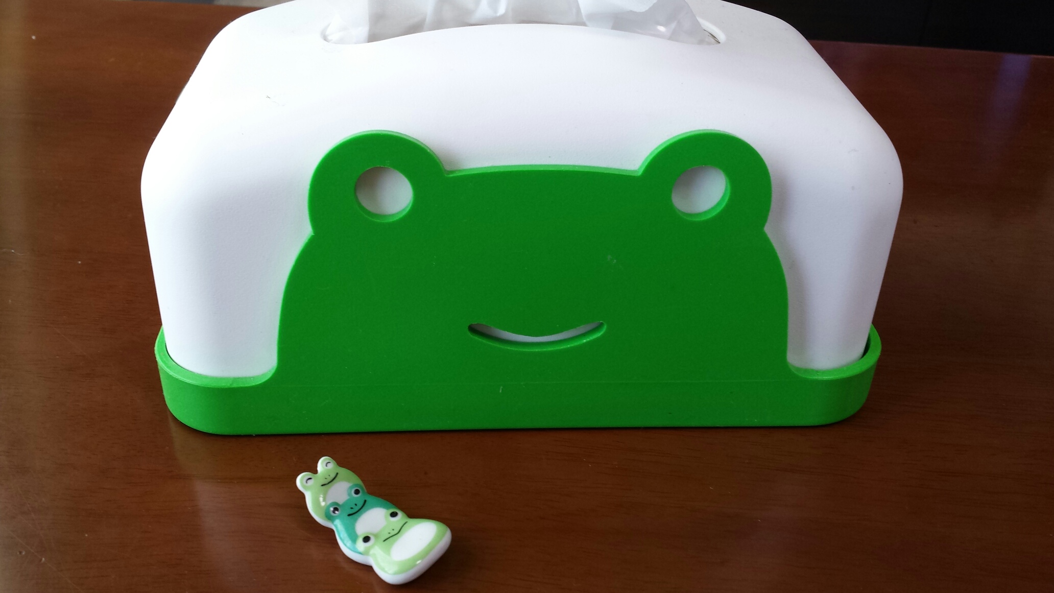 ではでは記念に、丁度テーブルに置いてあったカエルさんを…